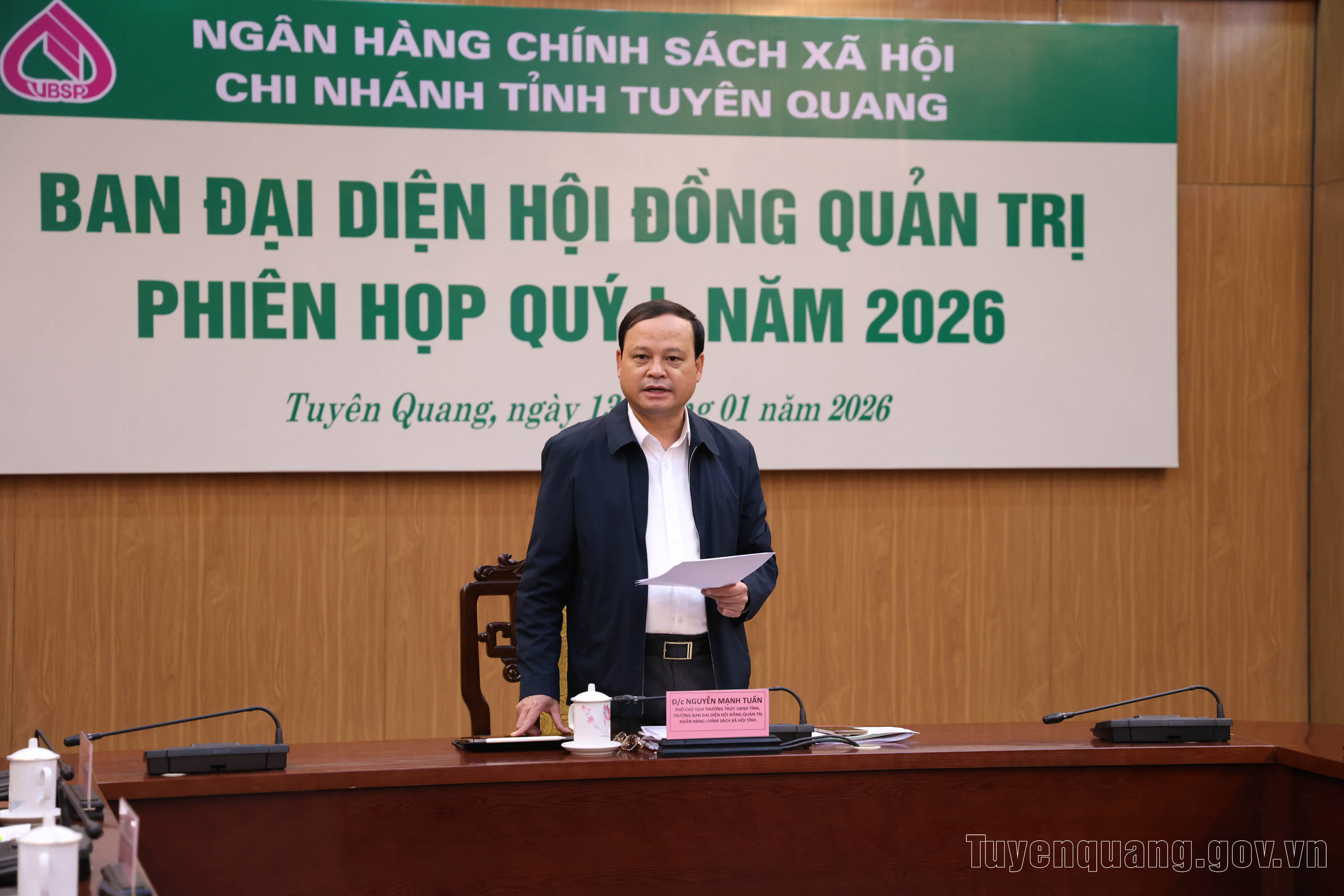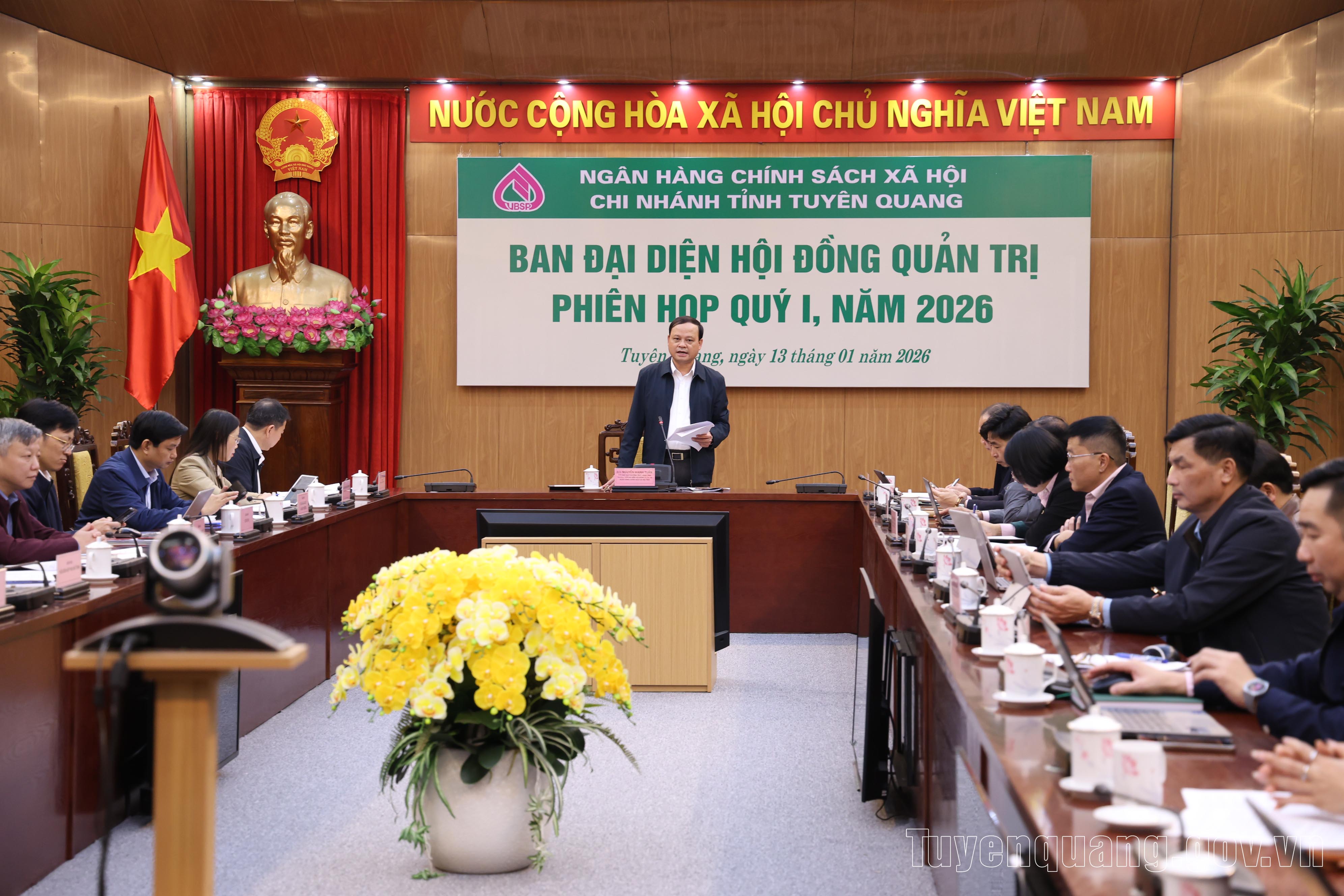 Chiều 13/1, đồng chí Nguyễn Mạnh Tuấn, Ủy viên Ban Thường vụ Tỉnh ủy, Phó Chủ tịch Thường trực UBND tỉnh, Trưởng Ban đại diện Hội đồng quản trị (HĐQT) Ngân hàng Chính sách xã hội (NHCSXH) tỉnh chủ trì Hội nghị đánh giá kết quả hoạt động tín dụng chính sách năm 2025; phương hướng, nhiệm vụ trọng tâm năm 2026 và quý I năm 2026. Dự hội nghị có tập thể lãnh đạo NHCSXH tỉnh; lãnh đạo một số sở, ngành.