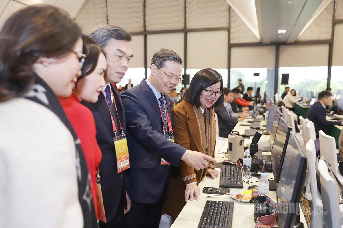 Các đồng chí lãnh đạo tỉnh tới thăm, động viên nhóm phóng viên Báo và PT,TH Tuyên Quang tác nghiệp tại Đại hội.