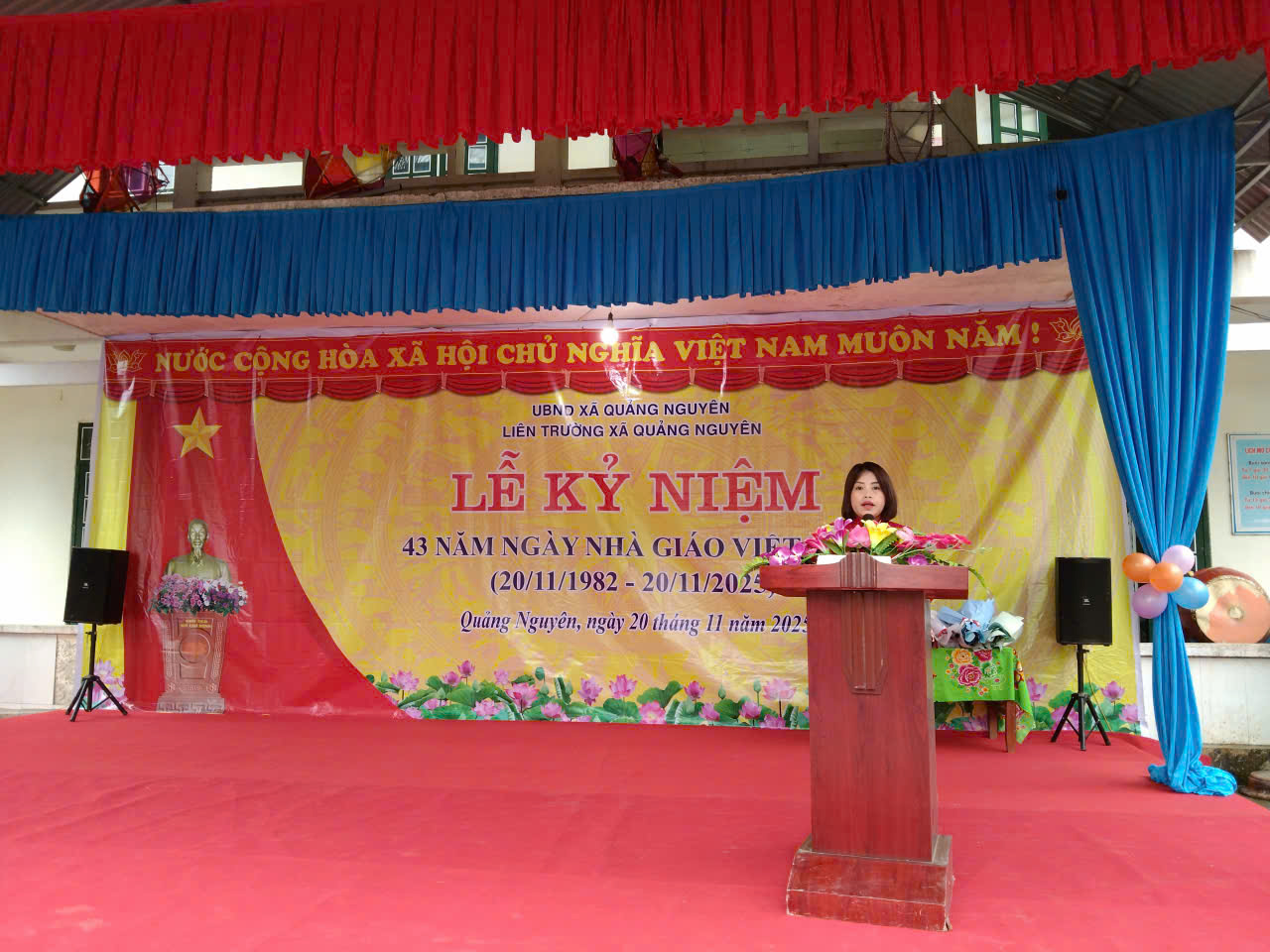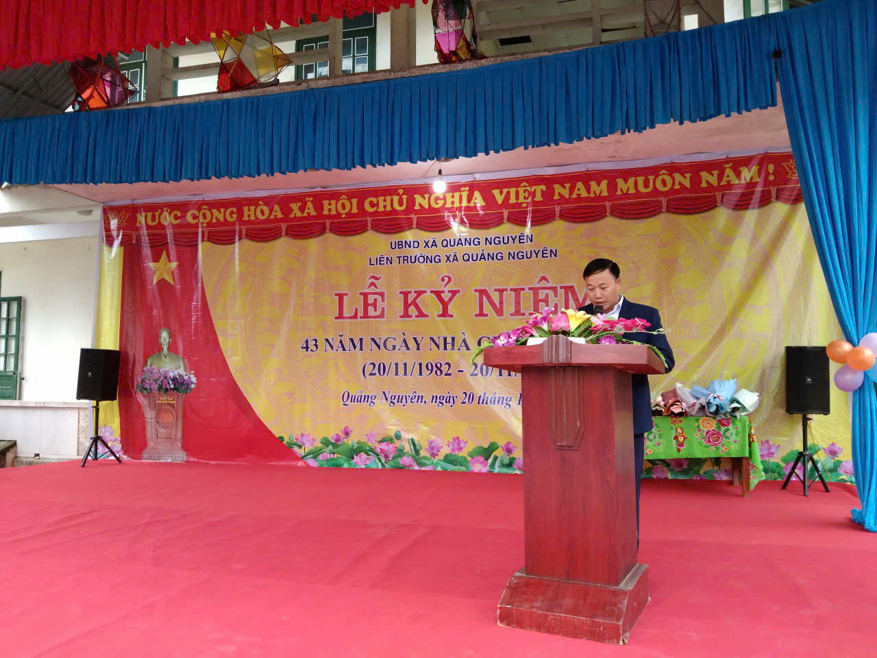 Phát biểu tại lễ kỷ niệm, đồng chí Đặng Đức Thành - Phó Bí thư Đảng ủy xã Quảng Nguyên bày tỏ lòng biết ơn sâu sắc đến các thế hệ nhà giáo đã cống hiến hết mình cho sự nghiệp giáo dục, đặc biệt trong bối cảnh xã Quảng Nguyên còn nhiều khó khăn về địa hình và kinh tế. Đồng chí nhấn mạnh: "Giáo dục là quốc sách hàng đầu, là nền tảng để xây dựng xã Quảng Nguyên ngày càng giàu đẹp. Chúng ta sẽ tiếp tục tạo mọi điều kiện tốt nhất để các thầy cô yên tâm cống hiến, đồng thời khuyến khích học sinh hiếu học, rèn luyện đạo đức theo lời dạy của Bác Hồ".